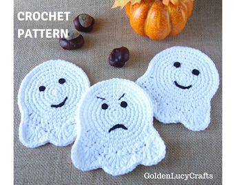 Crochet Pattern Ghost Coaster Applique Motif Halloween Etsy